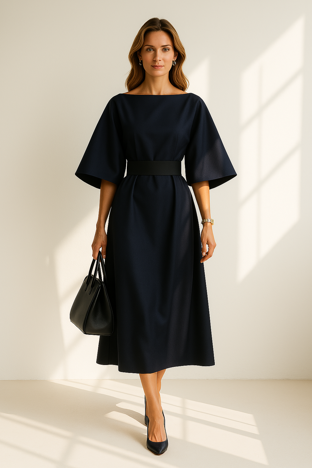 Ideal für formelle Anlässe oder stilvolle Tagesveranstaltungen – dieses Kleid lässt sich vielseitig kombinieren und sorgt für einen gepflegten Auftritt.